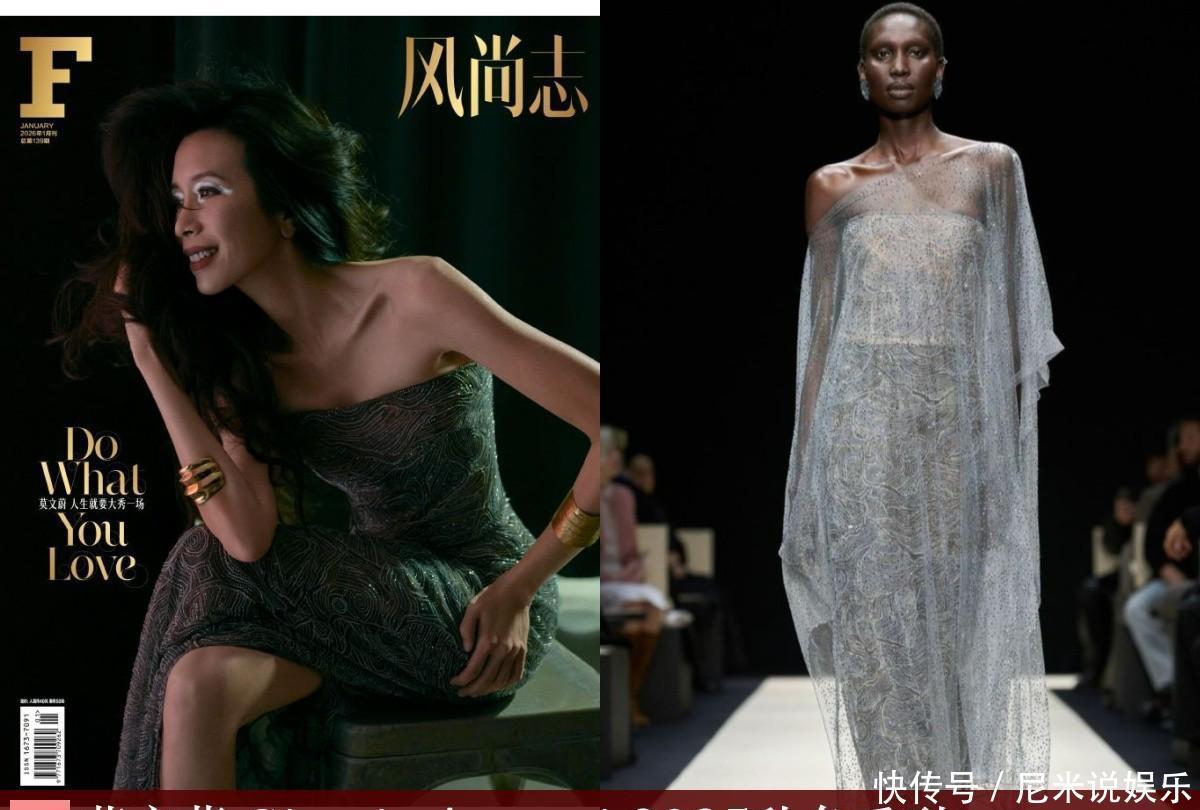 莫文蔚,《F风尚志》2026年1月刊。银色钻饰刺绣抹胸裙:Giorgio Armani 2025秋冬系列。Giorgio Armani:阿玛尼帝国 (Giorgio Armani S.P.A.)旗下高端品牌,创立于1975年。