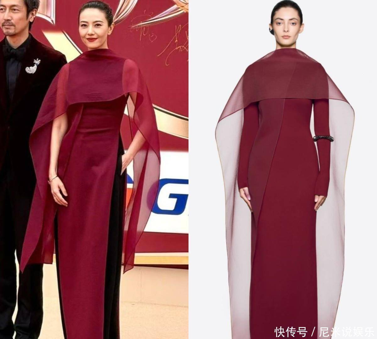 高圆圆,第四届CMG中国电视剧年度盛典。酒红色披风连衣裙:CHATS by C.DAM。
