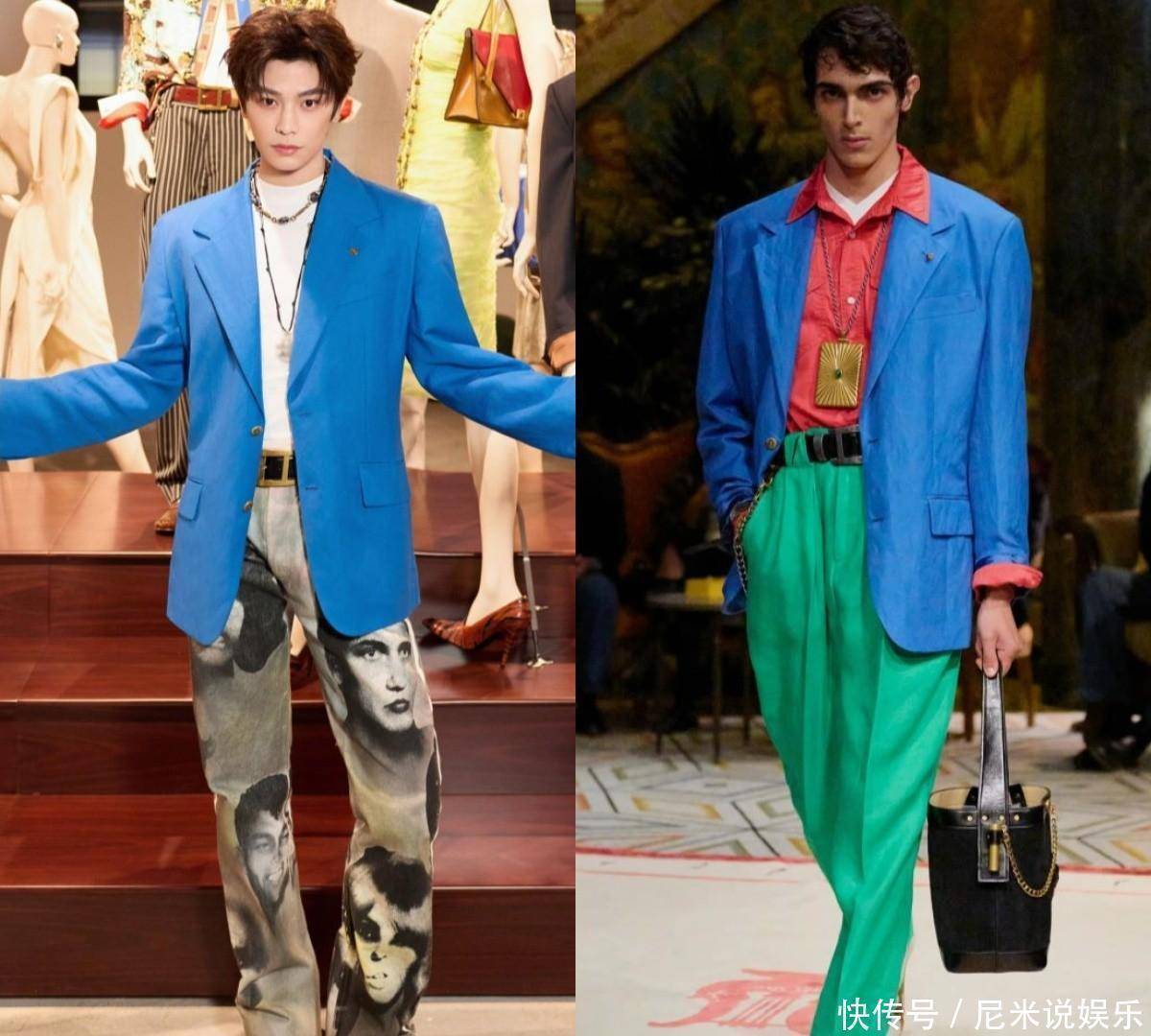丁禹兮,品牌活动。蓝色两粒扣西装:Versace 2026春夏系列。