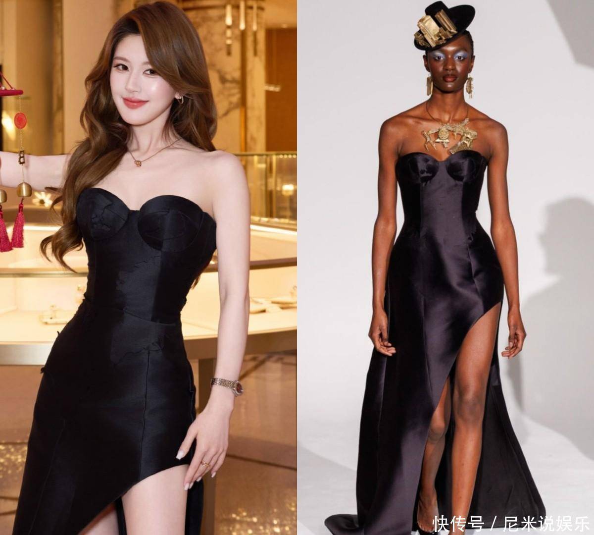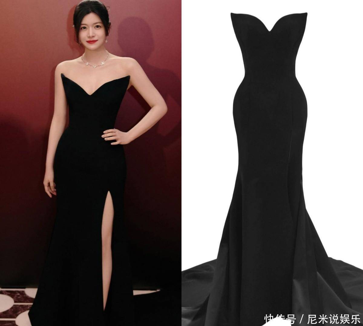 陈妍希,品牌晚宴。黑色开叉抹胸礼服:Poem。Poem:泰国品牌,设计师Chavanon Caisiri创立于2006年。