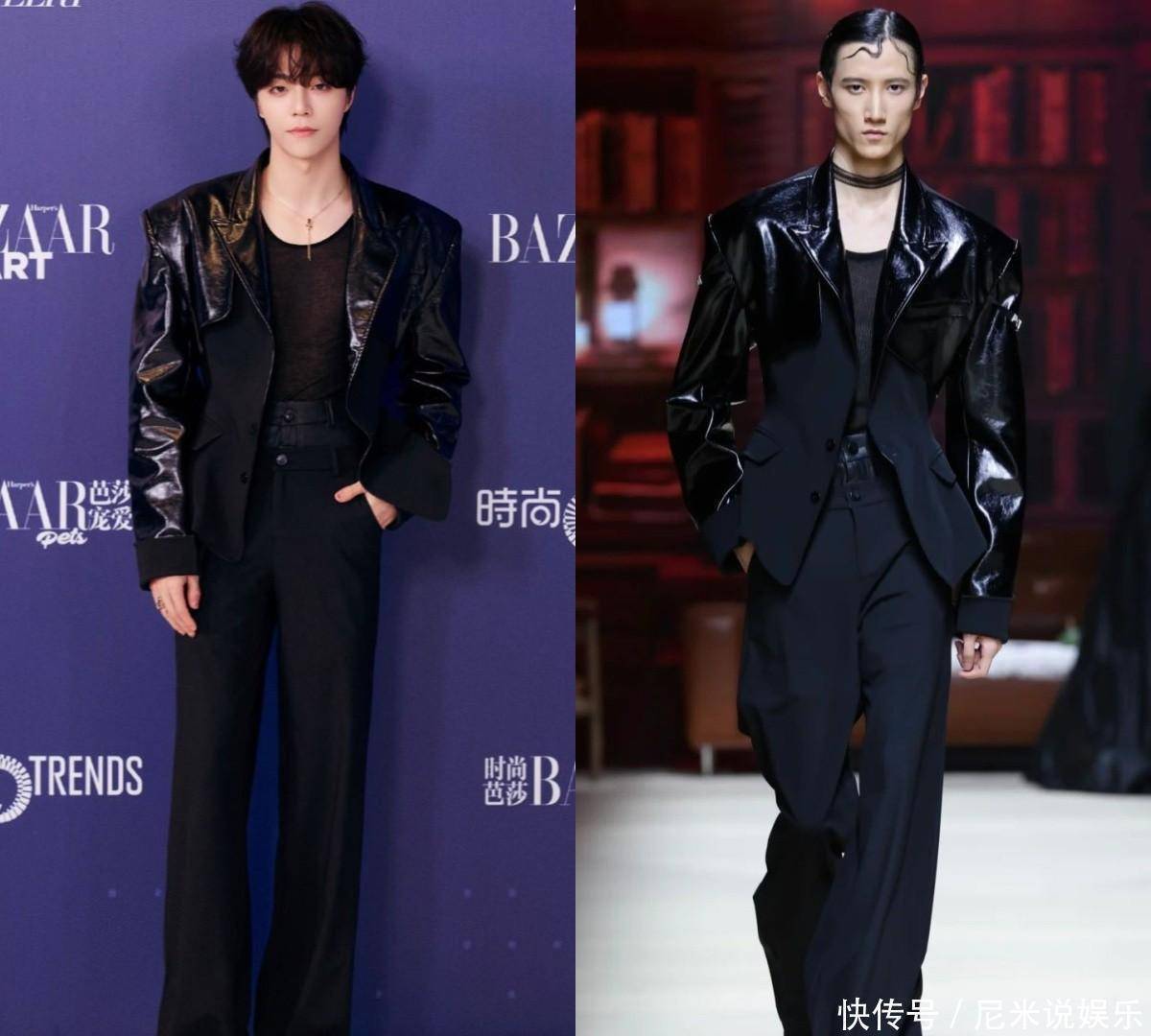 陈立农,时尚32周年时尚之夜。黑色拼皮西装:PO:HX 2026春夏系列。PO:HX:国内品牌,全称Potential Hero X,设计师陈佳豪创立。