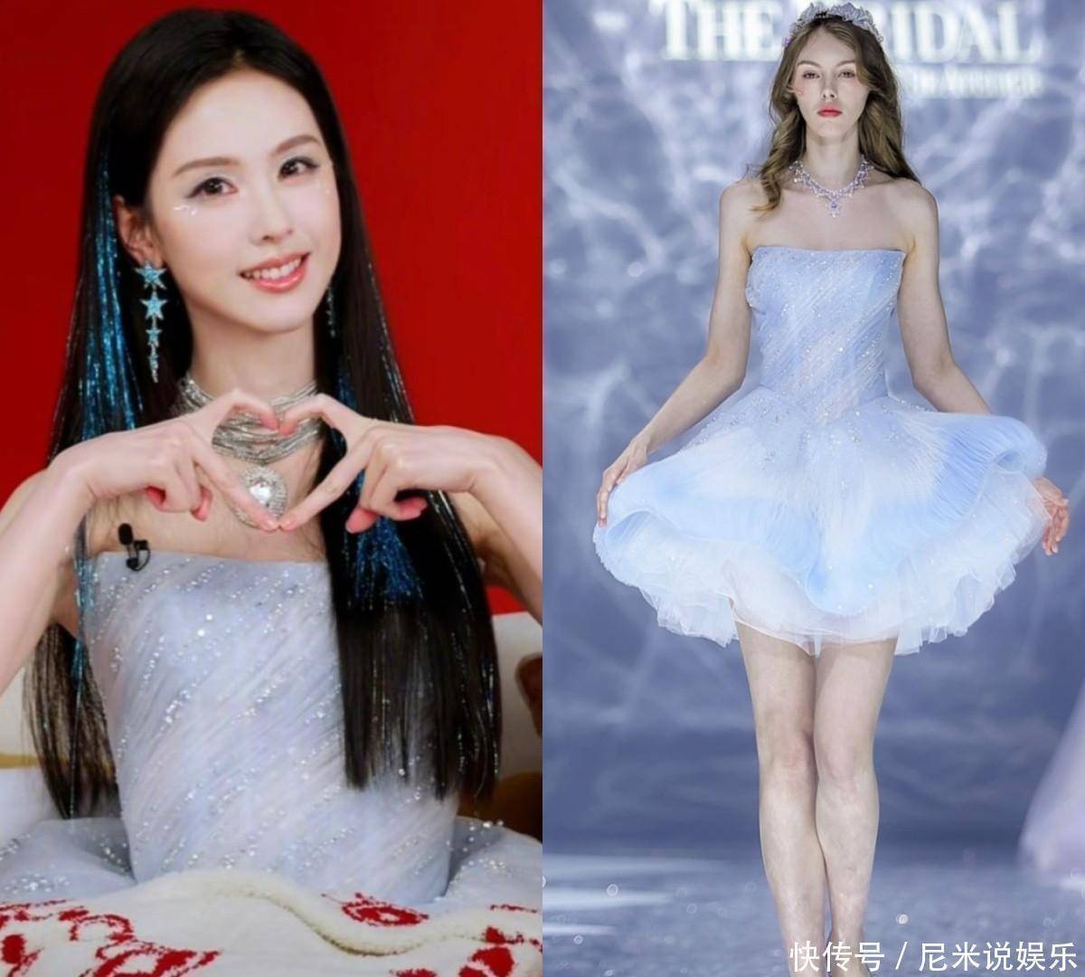 陈都灵,直播活动。蓝色钻饰薄纱抹胸连衣裙:The Bridal By The Atelier 2025秋冬系列。The Bridal By The Atelier:马来西亚高端定制工作室The Atelier旗下独立婚纱品牌。