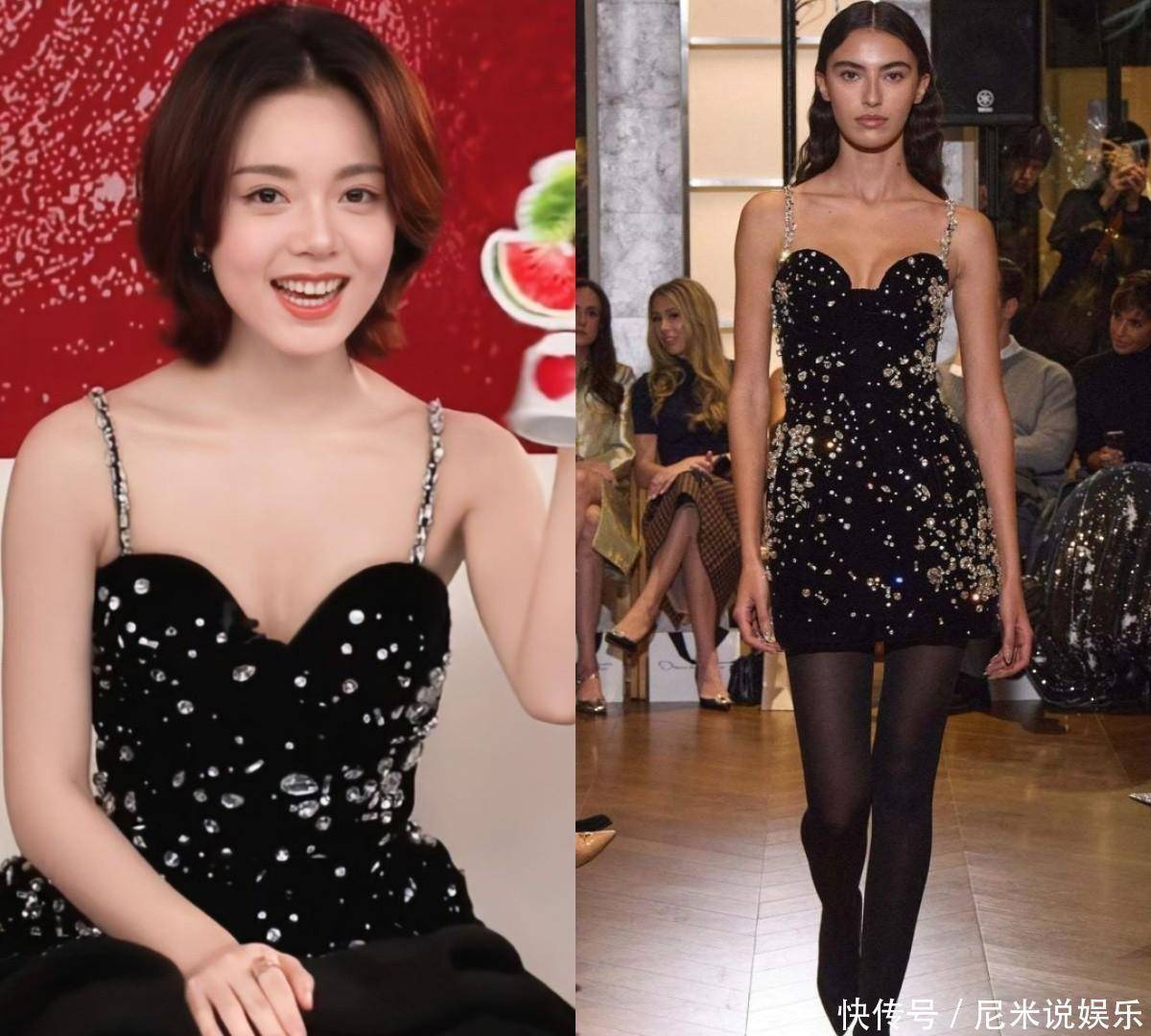赵今麦,直播活动。黑色丝绒钻饰吊带裙:Oscar de la Renta 2025秋冬系列。